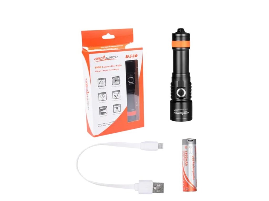 Orcatorch D530 je slušné jako hlavní světlo pro rekreační potápění nebo vynikající záložní světlo ideálně v kombinaci s Orcatorch D710. Díky silnému, úzkému kuželu výborně proniká i zakalenou vodou.